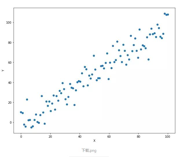 y = x + rand #将x和rand相加,得到伪造的标签数据y。所以(x,y)应能近似地落在y=x这条直线上