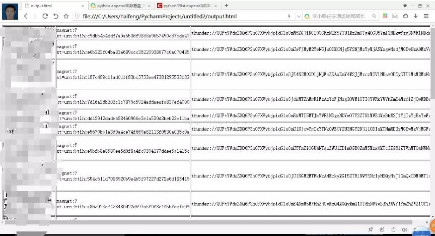 通过分析爬下来的html文件,种子链接在a标签下。然后提取magnet和thunder下的链接。
