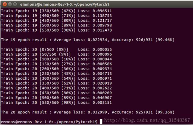 最后的训练结果和在keras下差不多,不过我训练的时候好像把训练集和测试集弄反了,数目好像测试集比训练集还多,有点尴尬,不过无伤大雅。结果图如下: