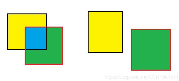 计算矩形间min的最大值,max的最小值,如果ymax-ymin值大于0则如左图所示,如果小于0则如右图所示