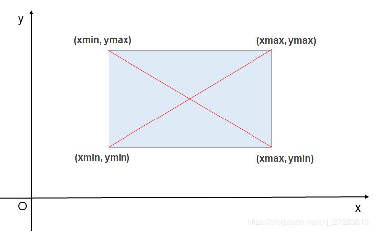 如下图所示:这个矩形的唯一位置可以用左上和右下的顶点坐标,即:(xmin, ymax, xmax, ymin)来确定,也可以用左下和右上顶点坐标,即(xmin, ymin, xmax, ymax)来确定。