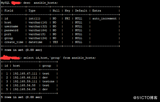 3.本章节演示从mysql数据作为数据源生成动态ansible 主机;