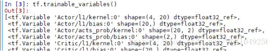 如:w1=tf.get_default_graph().get_tensor_by_name('Actor/l1/kernel:0')