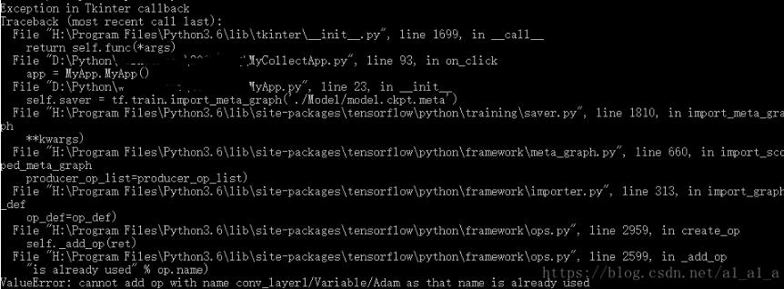 我在做tensorflow开发的时候遇到如下的错误,我请教了深度学习社区q群中的大神,大神说这是运算图还在内存中,没有及时释放,需要restart一下kernel,但是由于我的代码不能停止执行,所以没办法用重新运行代码来解决释放内存运行图的问题。