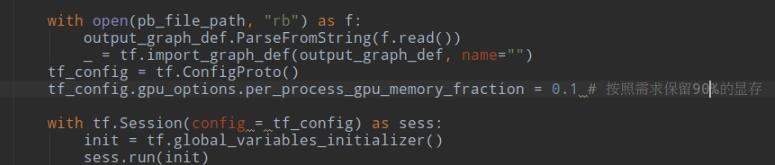 gpu_options = tf.GPUOptions(allow_growth=True) sess = tf.Session(config=tf.ConfigProto(gpu_options=gpu_options))