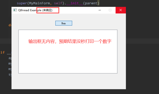上述实现的GUI程序都是单线程运行,对于需要执行一个特别耗时的操作时就会出现该问题现象。要解决这种问题可以考虑使用多线程模块QThread。