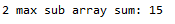 print('2 max sub array sum:', maxSubArrSum(arr))