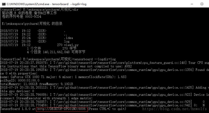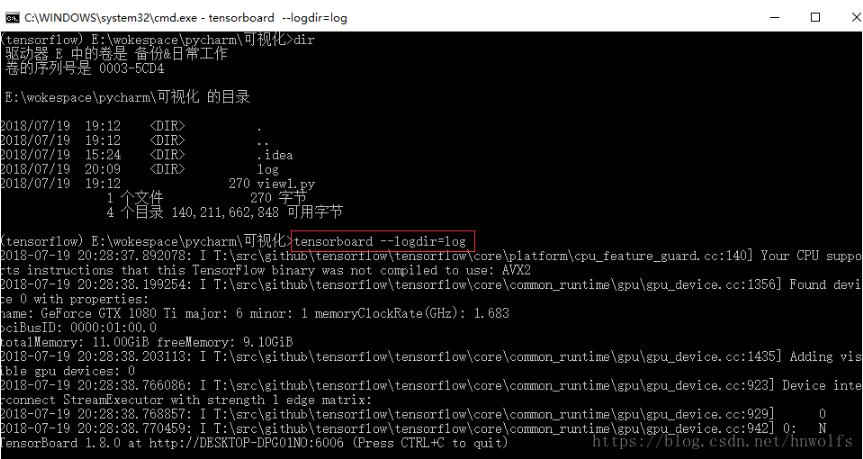(3)输入tensorboard --logdir=log,启动TensorBoard