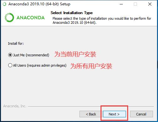 选择仅为当前用户安装 Anoconda 还是所有用户