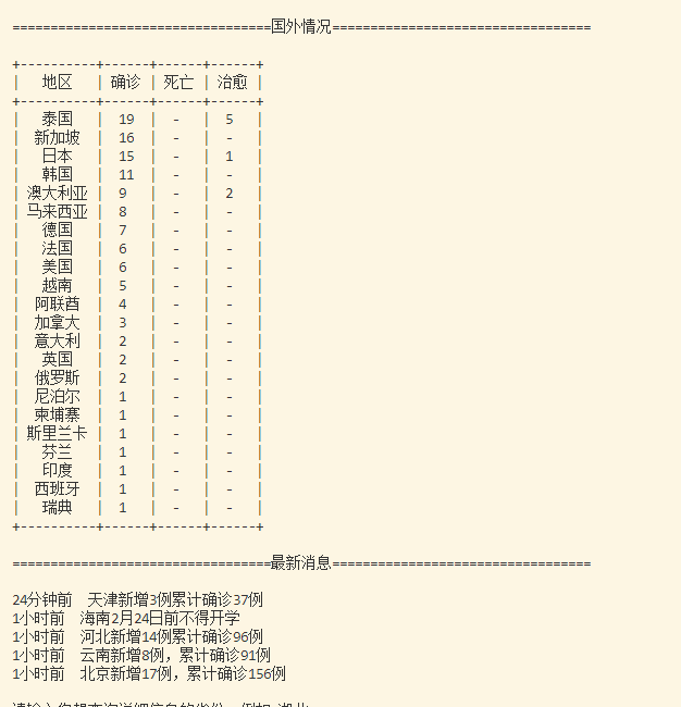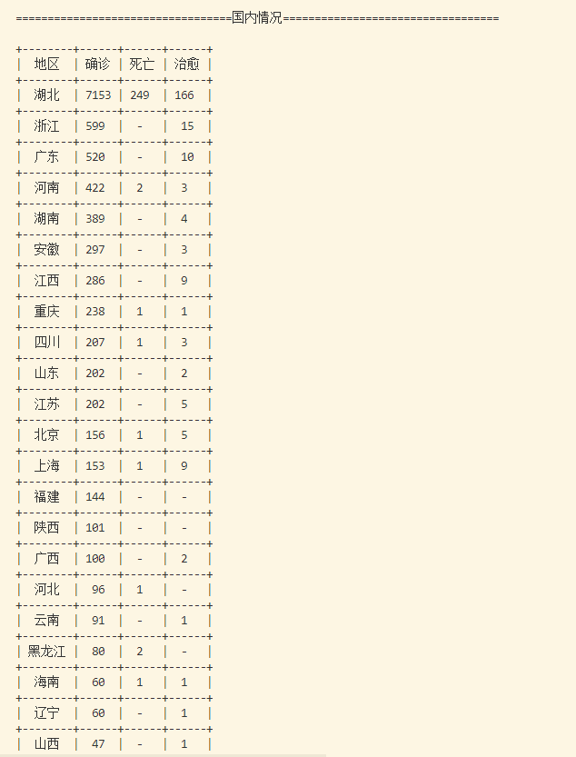 print("==================================国内情况==================================")