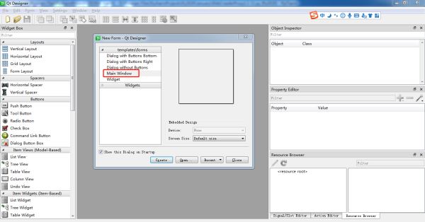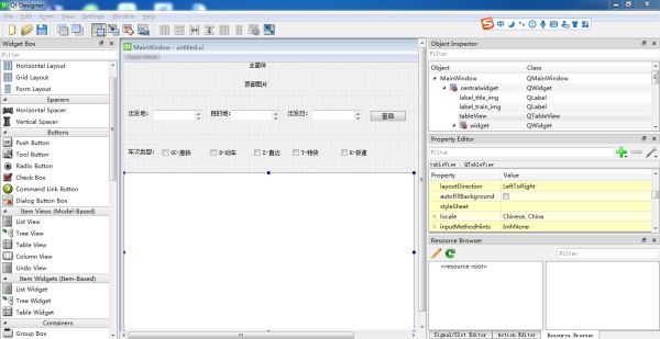 在PyQt5的安装路径中找到designer.exe(./Python/Lib/site-packages\pyqt5_tools\Qt\bin),双击打开添加住窗体,然后根据实际项目开发需要添加相关按钮进行程序界面布局即可(即见即可得),如下图所示: