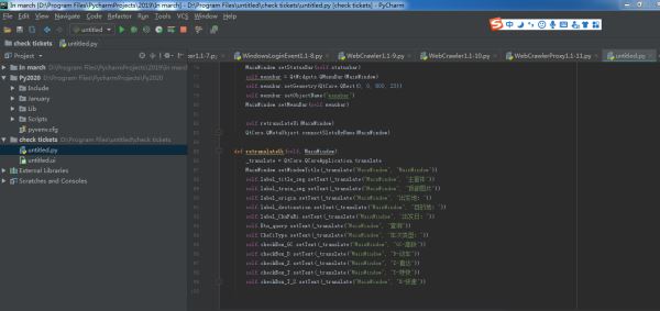 打开py文件后,可以看到自动生成的代码中已经导入了PyQt5以及其内部常用的模块。如下图所示: