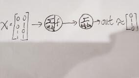 输入量为一个矩阵,0和0异或结果为0,0和1异或结果为1,依次类推,对应我们的目标值为[0,1,1,0],最后之所以用约等号是因为我们的预测值与目标值之间会有一定的偏差,如果训练的好那么这二者之间是无限接近的。