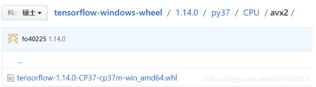 2. 在这里下载对应版本的tensorflow:https://github.com/fo40225/tensorflow-windows-wheel,比如我需要的是CPU+AVX2+Python3.7,那么我就选择第二个: