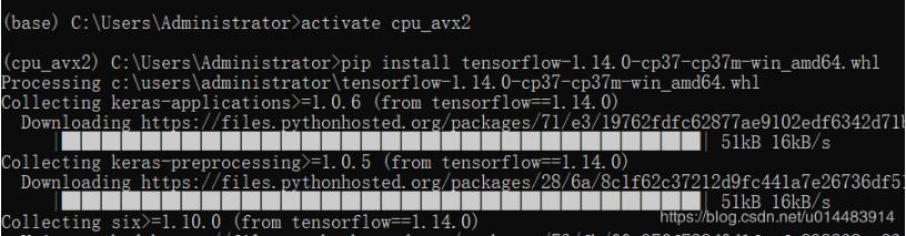 然后打开Anaconda Prompt,进入刚才创建的虚拟空间cpu_avx2,安装即可: