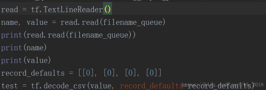 Reader的功能是读取数据记录,Decoder的功能是将数据的记录转化为张量格式。在使用时需要先创建输入数据文件对应的Reader,然后从文件名队列中取出文件名,在调用Reader.read的方法返回一个类似于(输入文件名,数据记录)的元组。最后使用Decoder方法将每一列数据都转化为张量的形式。