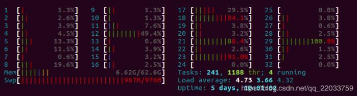 不过python的多线程并不是真正的多线程,虽然看起来我是启动了32线程,但运行时的CPU占用如下所示: