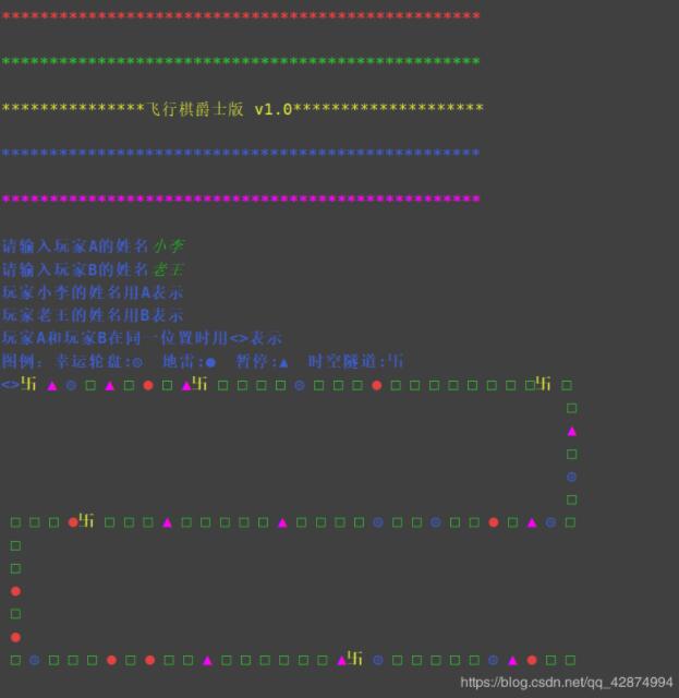 print("*" * 15 + "飞行棋爵士版 v1.0" + "*"*20)