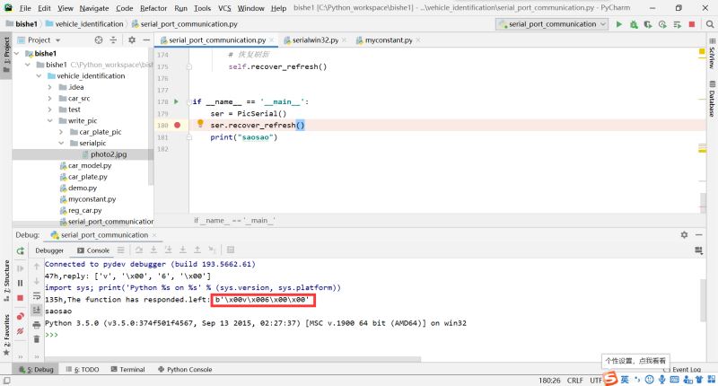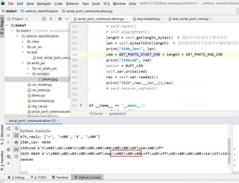 现象是运行一直不停都是手动stop console,或者没有stop console会一直打印lines为空,就此可以猜测read()不是阻塞的。是图片字节总数不断增多。每次遍历完后满足self.ser.read(len + 10 - countofread_complete_byte)后再readall()还是有剩余的内容。