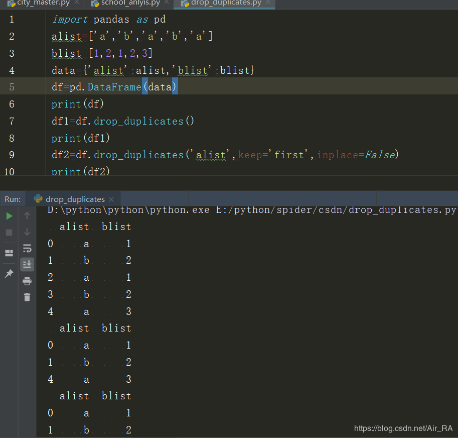 # 删除 dataframe 重复数据