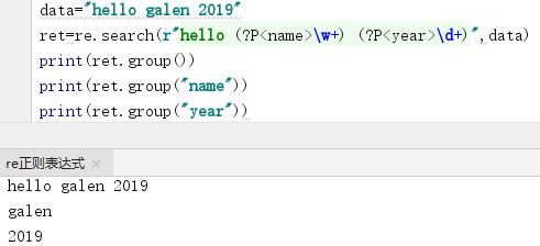有名分组: 给分组取名?P<name>,可以用名字取匹配的结果