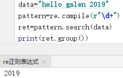 re.search()方法: 搜索结果返回对象,可以用ret.group()方法打印结果
