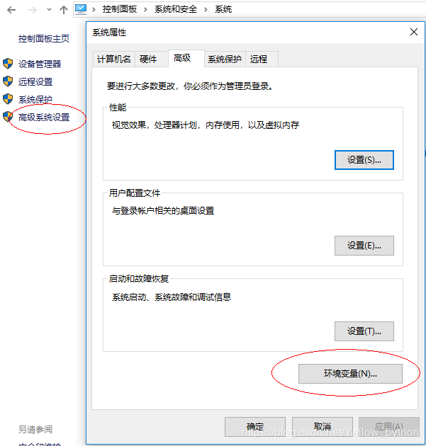 控制面板\系统和安全\系统 -> 高级系统设置 -> 环境变量