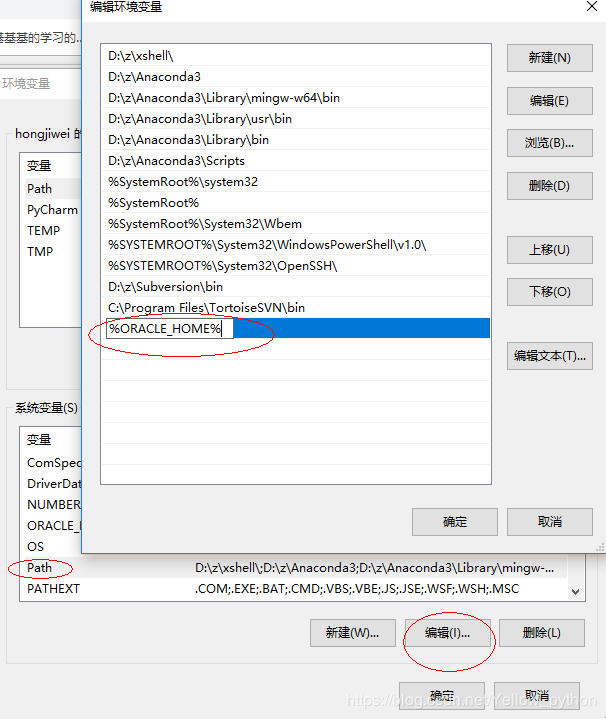 编辑PATH,添加%ORACLE_HOME%