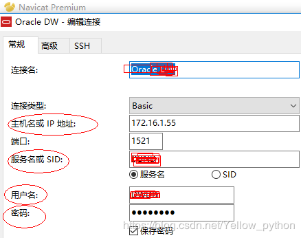检查【主机名或IP地址】、【服务名或SID】、【用户名】和【密码】是否填对