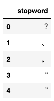 stopwords = pd.read_csv('StopwordsCN.txt', encoding='utf8', names=['stopword'], index_col=False)