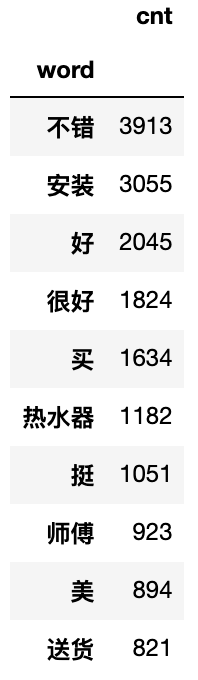 我们使用京东商场的美的电器评论来看看结巴分词的效果。如果你没有安装结巴分词库则需要在命令行下输入pip install jieba,安装完之后即可开始分词之旅。