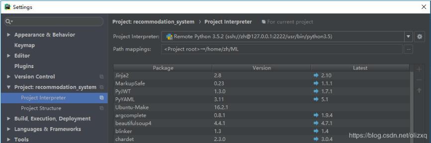 1、确定服务器 IP 地址(连接子系统IP地址为127.0.0.1),确保已经开启 SSH 服务,并且安装了 Python,本地 Project 名为 recommodation_system;