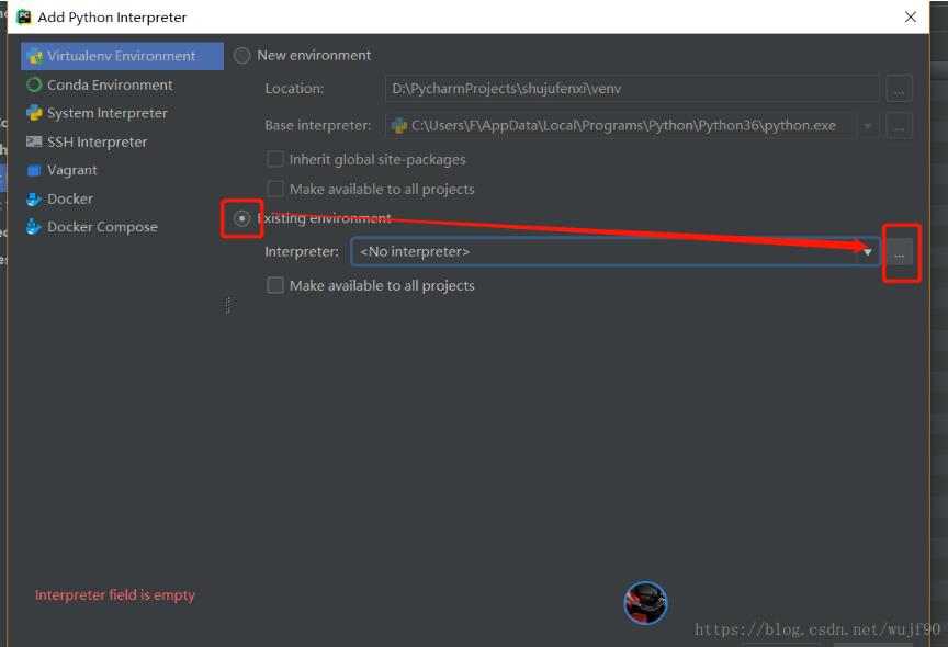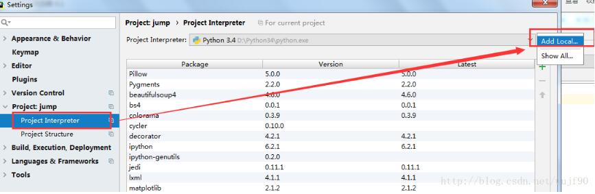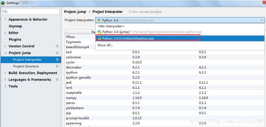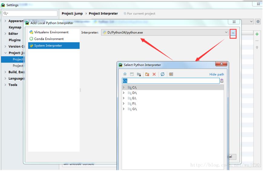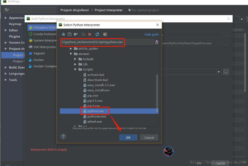 4、然后在回到settings截面就可以直接选择python安装目录下的python.exe