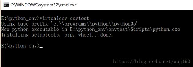 3、在cmd中进入上一步创建的文件夹,并输入 virtualenv envtest(虚拟环境名称),如图: