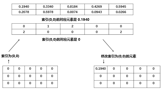 我们是 2维 张量,一开始进行 $self[index[0][0]][0]$,其中 $index[0][0]$ 的值是0,所以执行 $self[0][0] = x[0][0] = 0.1940$