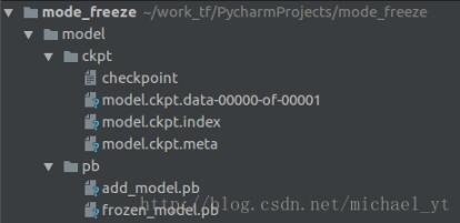add_model.pb : 里面保存了重输入层到输出层这个计算过程的计算图和相关变量的值,我们得到这个模型后传入一个输入,既可以得到一个预估的输出值