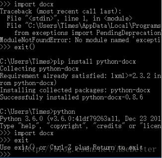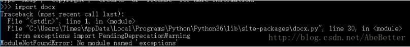 若接着出现No module named ‘exceptions',安装python-docx即可