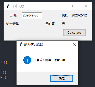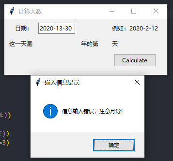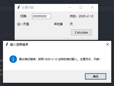 messagebox.showinfo(title="输入信息错误", message="输出格式错误,按照 2020-2-12 这样的格式输入。注意月份,天数!")