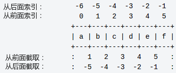 索引值以 0 为开始值,-1 为从末尾的开始位置。