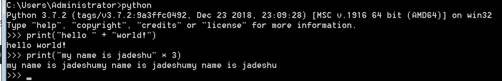 2)字符串可以用+运算符连接在一起,用*运算符重复。
