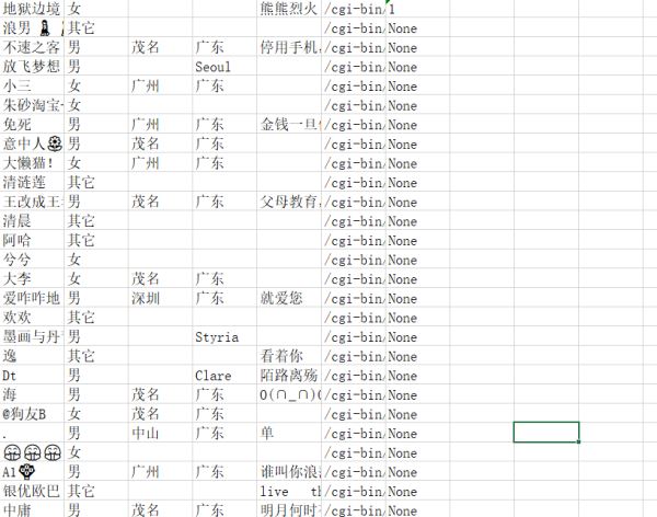 可以看到其好友基本分布再广东省,个性签名也是非常的杀马特