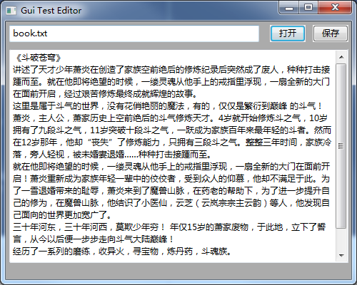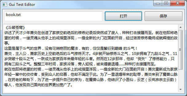 import wx app = wx.App() frame = wx.Frame(None,title = "Gui Test Editor",pos = (1000,200),size = (500,400)) path_text = wx.TextCtrl(frame,pos = (5,5),size = (350,24)) open_button = wx.Button(frame,label = "打开",pos = (370,5),size = (50,24)) save_button = wx.Button(frame,label = "保存",pos = (430,5),size = (50,24)) content_text= wx.TextCtrl(frame,pos = (5,39),size = (475,300),style = wx.TE_MULTILINE) # wx.TE_MULTILINE可以实现换行功能,若不加此功能文本文档显示为一行显示 frame.Show() app.MainLoop()