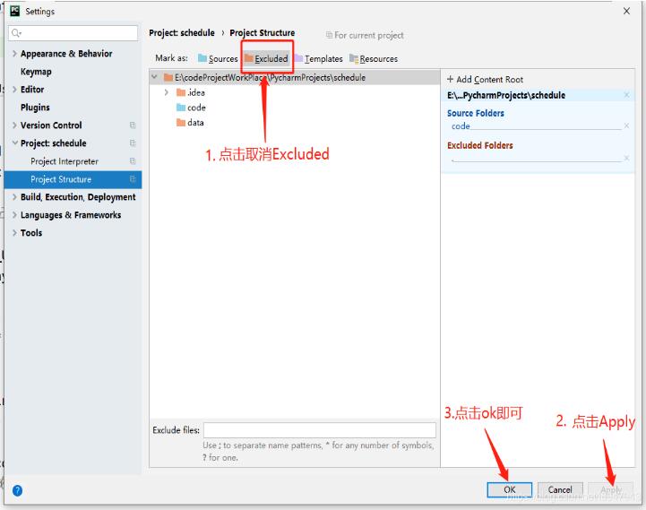 今天在pycharm中手贱,点击了项目exclude,直接懵逼,项目东西找不到了,奶奶的