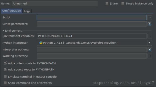 会出现working directory的设置。