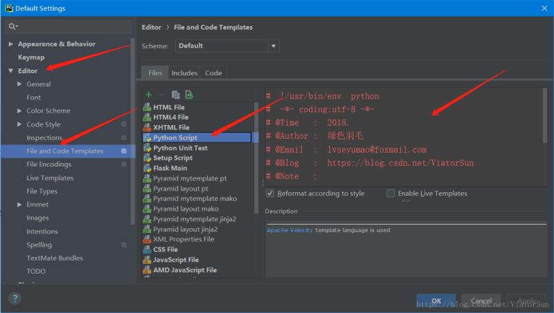 选择Editor --> Color&Style --> File and Templates --> Python-Script
