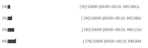 from tqdm import tqdm import time for i in tqdm(range(10000), ncols=10): time.sleep(0.001)