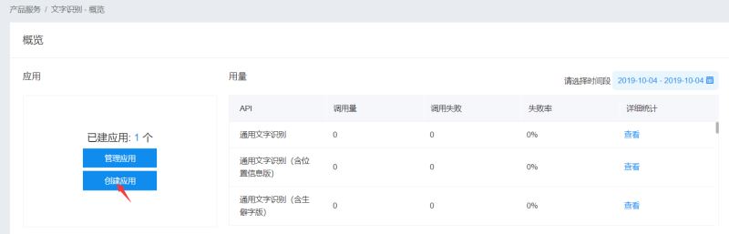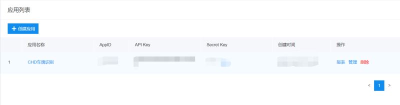 现在我们就创建好了车牌识别的应用,点击应用列表可查看。