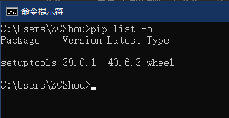 列出当前已经安装的包。使用命令pip list -o则可查询可升级的包。