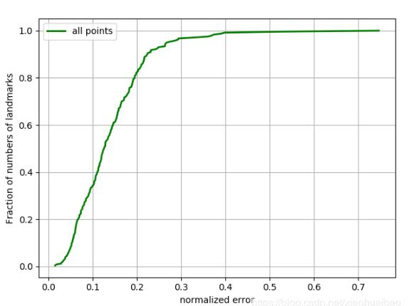 在人脸的关键点检测中,dist()计算的距离/双眼间距离 进行归一化。将归一化后的值append到MSE,调用drawCDFSingle(MSE)即可看到累计误差曲线。