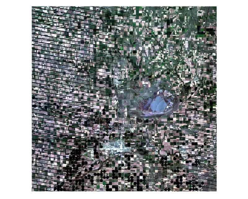 Landsat7 ETM+卫星影像由于卫星传感器故障,导致此后获取的影像出现了条带。如下图所示, 影像中均匀的布满条带。